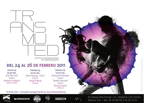 En 2009, regresé a México inspirado por el conocimiento y la experiencia que había adquirido en China. Ya con una clara visión sobre la importancia de la cooperación y del intercambio cultural fundé la organización TRANSMUTED NETWORK, cuyo objetivo es negociar cooperación e intercambio artístico entre México y otros países, además de ser la plataforma para un festival internacional de performance que pudiera traer a mi país a los más destacados exponentes de este arte.
