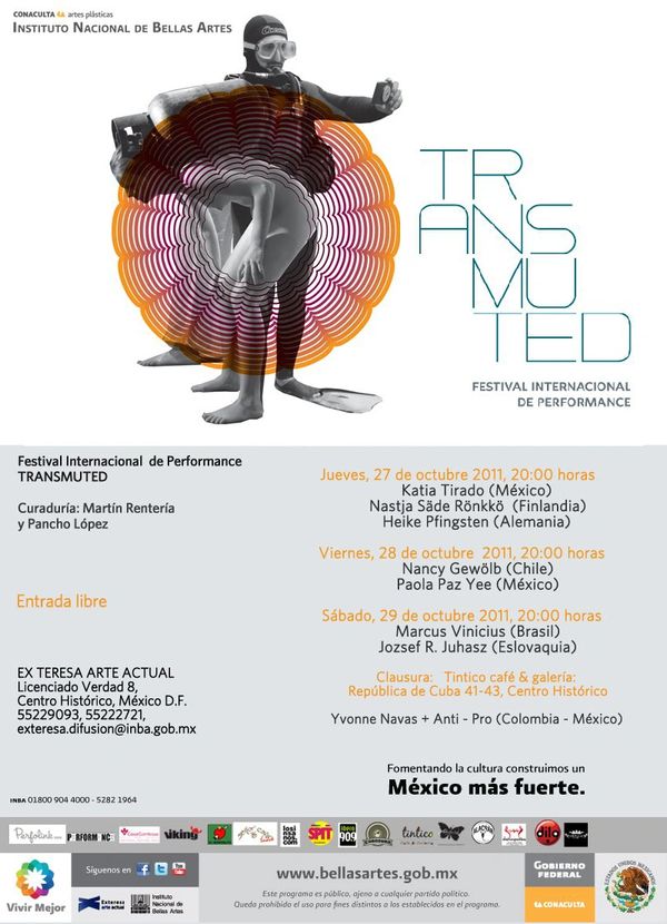 Iniciar TRANSMUTED con más de veinte reconocidos artistas de Europa y América materializó mi deseo de un festival de performance de primer nivel en mi país que, de alguna modo, podría llenar el vacío que dejó la ausencia de la Muestra Internacional de Performance del Museo Ex Teresa Arte Actual.